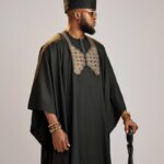 • A rich black, Royal Chainflow embroidered agbada